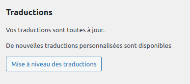 Dans la page de gestion des mises à niveau, un tableau apparaîtra en bas si de nouvelles versions de traductions sont disponibles.