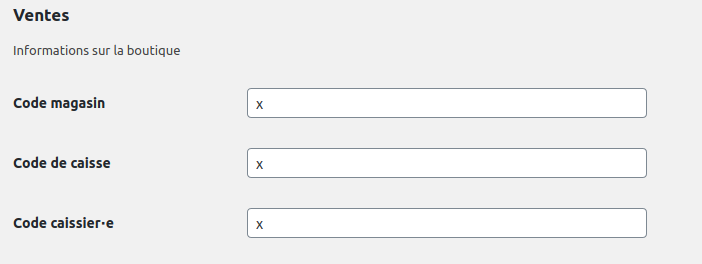 Par ailleurs, vous serez également amené à renseigner les identifiants de caisse et de vendeur qui seront utilisés pour créer les ventes effectuées de puis la boutique.