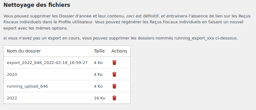 Attention : ceci est définitif, et entraînera l’absence de lien sur les Reçus Fiscaux individuels dans le Profil utilisateur.
